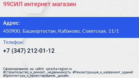 99СИЛ, интернет-магазин по адресу 450900, Башкортостан, Кабаково, Советская, 11/1 в дальнейшем Организация, размещена в следующих категориях: