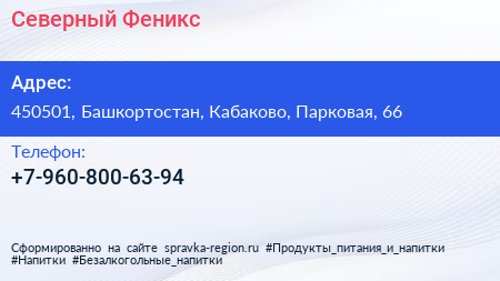 Северный Феникс по адресу 450501, Башкортостан, Кабаково, Парковая, 66 в дальнейшем Организация, размещена в следующих категориях: