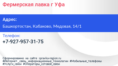 Фермерская лавка, г. Уфа по адресу Башкортостан, Кабаково, Медовая, 14/1 в дальнейшем Организация, размещена в следующих категориях: