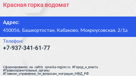 Красная горка, водомат по адресу 450056, Башкортостан, Кабаково, Мокроусовская, 2/1а в дальнейшем Организация, размещена в следующих категориях: