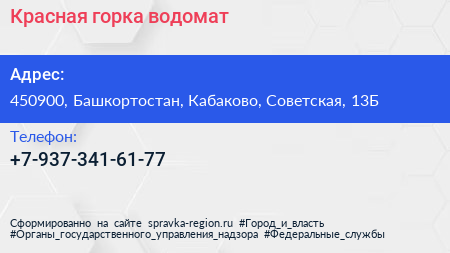 Красная горка, водомат по адресу 450900, Башкортостан, Кабаково, Советская, 13Б в дальнейшем Организация, размещена в следующих категориях: