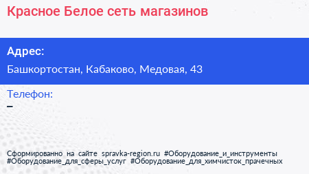 Красное & Белое, сеть магазинов по адресу Башкортостан, Кабаково, Медовая, 43 в дальнейшем Организация, размещена в следующих категориях: