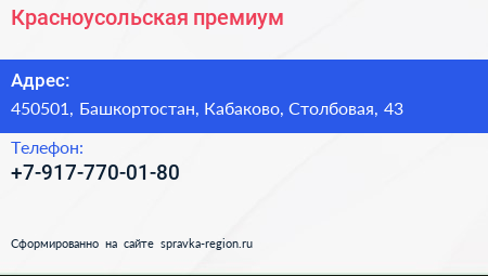Красноусольская премиум по адресу 450501, Башкортостан, Кабаково, Столбовая, 43 в дальнейшем Организация, размещена в следующих категориях: