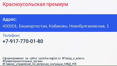 Красноусольская премиум по адресу 450501, Башкортостан, Кабаково, Новобулгаковская, 1 в дальнейшем Организация, размещена в следующих категориях: