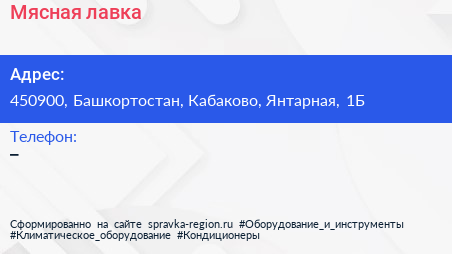 Мясная лавка по адресу 450900, Башкортостан, Кабаково, Янтарная, 1Б в дальнейшем Организация, размещена в следующих категориях: