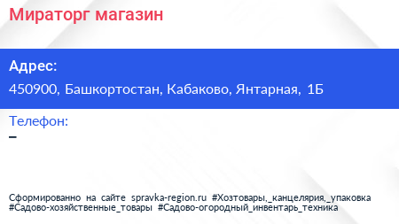 Мираторг, магазин по адресу 450900, Башкортостан, Кабаково, Янтарная, 1Б в дальнейшем Организация, размещена в следующих категориях: