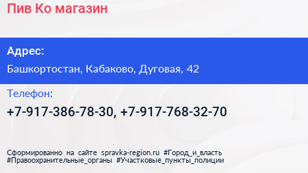 Пив & Ко, магазин по адресу Башкортостан, Кабаково, Дуговая, 42 в дальнейшем Организация, размещена в следующих категориях: