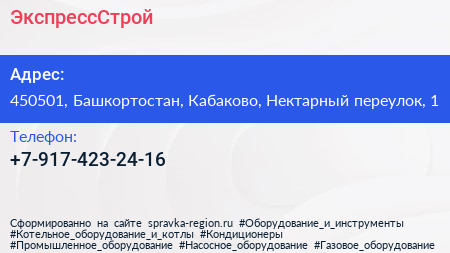 ЭкспрессСтрой по адресу 450501, Башкортостан, Кабаково, Нектарный переулок, 1 в дальнейшем Организация, размещена в следующих категориях: