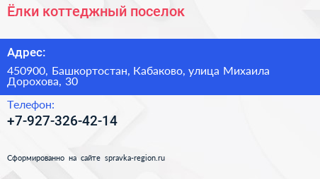 Ёлки, коттеджный поселок по адресу 450900, Башкортостан, Кабаково, улица Михаила Дорохова, 30 в дальнейшем Организация, размещена в следующих категориях: