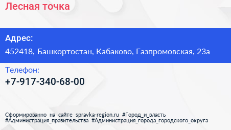 Лесная точка по адресу 452418, Башкортостан, Кабаково, Газпромовская, 23а в дальнейшем Организация, размещена в следующих категориях:
