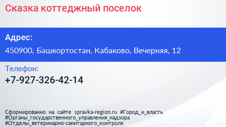 Сказка, коттеджный поселок по адресу 450900, Башкортостан, Кабаково, Вечерняя, 12 в дальнейшем Организация, размещена в следующих категориях: