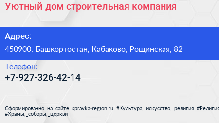 Уютный дом, строительная компания по адресу 450900, Башкортостан, Кабаково, Рощинская, 82 в дальнейшем Организация, размещена в следующих категориях: