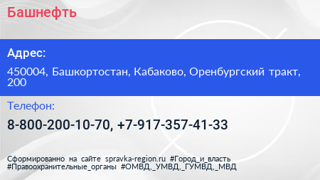 Башнефть по адресу 450004, Башкортостан, Кабаково, Оренбургский тракт, 200 в дальнейшем Организация, размещена в следующих категориях: