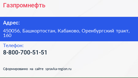 Газпромнефть по адресу 450056, Башкортостан, Кабаково, Оренбургский тракт, 160 в дальнейшем Организация, размещена в следующих категориях: