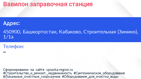 Вавилон, заправочная станция по адресу 450900, Башкортостан, Кабаково, Строительная (Зинино), 1/1а в дальнейшем Организация, размещена в следующих категориях: