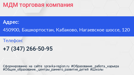 МДМ, торговая компания по адресу 450900, Башкортостан, Кабаково, Нагаевское шоссе, 120 в дальнейшем Организация, размещена в следующих категориях:
