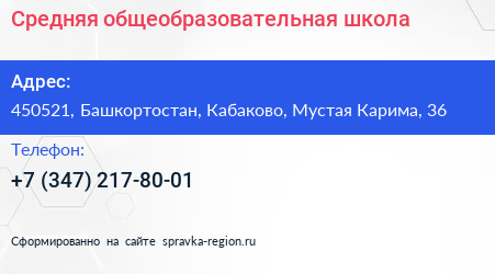 Средняя общеобразовательная школа по адресу 450521, Башкортостан, Кабаково, Мустая Карима, 36 в дальнейшем Организация, размещена в следующих категориях: