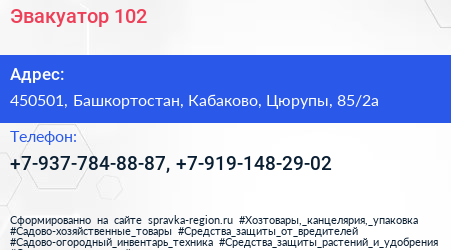 Эвакуатор 102 по адресу 450501, Башкортостан, Кабаково, Цюрупы, 85/2а в дальнейшем Организация, размещена в следующих категориях: