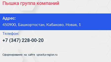 Пышка, группа компаний по адресу 450900, Башкортостан, Кабаково, Новая, 1 в дальнейшем Организация, размещена в следующих категориях:
