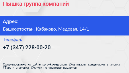 Пышка, группа компаний по адресу Башкортостан, Кабаково, Медовая, 14/1 в дальнейшем Организация, размещена в следующих категориях: