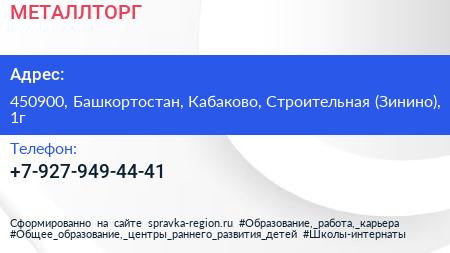 МЕТАЛЛТОРГ по адресу 450900, Башкортостан, Кабаково, Строительная (Зинино), 1г в дальнейшем Организация, размещена в следующих категориях: