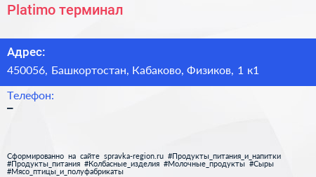 Platimо, терминал по адресу 450056, Башкортостан, Кабаково, Физиков, 1 к1 в дальнейшем Организация, размещена в следующих категориях: