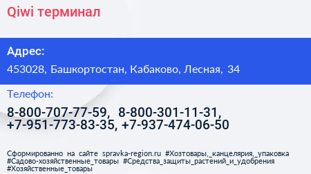 Qiwi, терминал по адресу 453028, Башкортостан, Кабаково, Лесная, 34 в дальнейшем Организация, размещена в следующих категориях:
