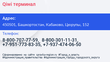 Qiwi, терминал по адресу 450501, Башкортостан, Кабаково, Цюрупы, 152 в дальнейшем Организация, размещена в следующих категориях: