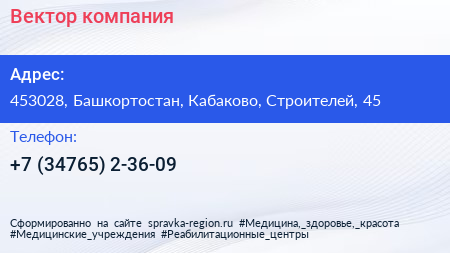 Вектор, компания по адресу 453028, Башкортостан, Кабаково, Строителей, 45 в дальнейшем Организация, размещена в следующих категориях: