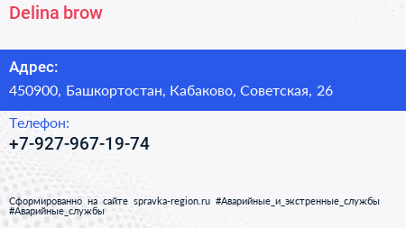 Delina.brow по адресу 450900, Башкортостан, Кабаково, Советская, 26 в дальнейшем Организация, размещена в следующих категориях: