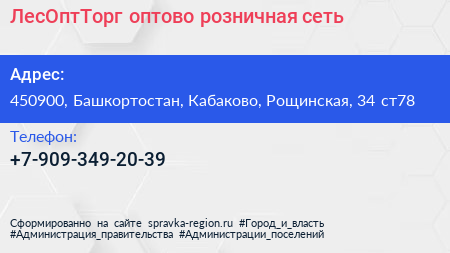 ЛесОптТорг, оптово-розничная сеть по адресу 450900, Башкортостан, Кабаково, Рощинская, 34 ст78 в дальнейшем Организация, размещена в следующих категориях: