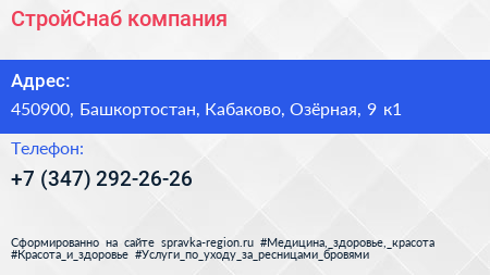 СтройСнаб, компания по адресу 450900, Башкортостан, Кабаково, Озёрная, 9 к1 в дальнейшем Организация, размещена в следующих категориях: