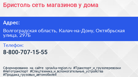 Бристоль, сеть магазинов у дома по адресу Волгоградская область, Калач-на-Дону, Октябрьская улица, 297Б в дальнейшем Организация, размещена в следующих категориях: