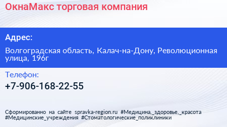 ОкнаМакс, торговая компания по адресу Волгоградская область, Калач-на-Дону, Революционная улица, 196г в дальнейшем Организация, размещена в следующих категориях: