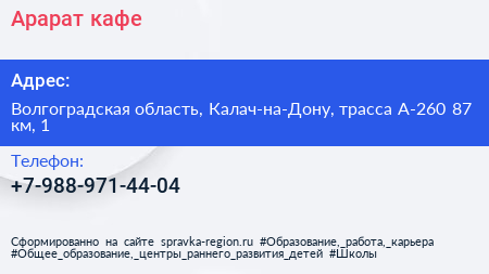 Арарат, кафе по адресу Волгоградская область, Калач-на-Дону, трасса А-260 87 км, 1 в дальнейшем Организация, размещена в следующих категориях: