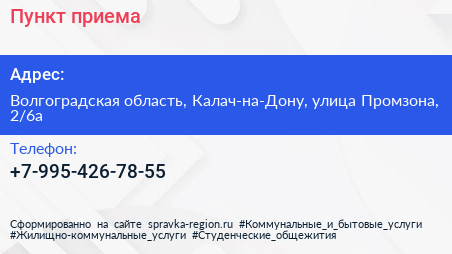Пункт приема по адресу Волгоградская область, Калач-на-Дону, улица Промзона, 2/6а в дальнейшем Организация, размещена в следующих категориях: