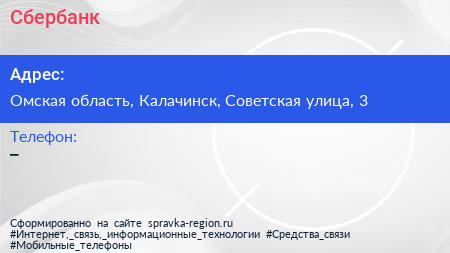 Сбербанк по адресу Омская область, Калачинск, Советская улица, 3 в дальнейшем Организация, размещена в следующих категориях: