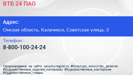 ВТБ 24, ПАО по адресу Омская область, Калачинск, Советская улица, 3 в дальнейшем Организация, размещена в следующих категориях: