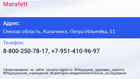Marafett по адресу Омская область, Калачинск, Петра Ильичёва, 11 в дальнейшем Организация, размещена в следующих категориях: