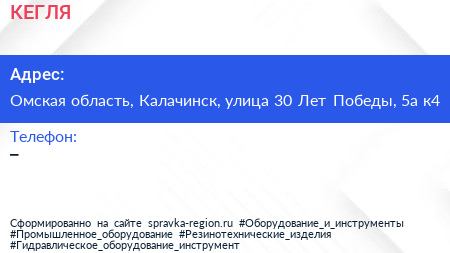 КЕГЛЯ по адресу Омская область, Калачинск, улица 30 Лет Победы, 5а к4 в дальнейшем Организация, размещена в следующих категориях: