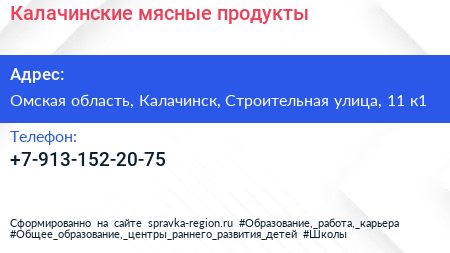 Калачинские мясные продукты по адресу Омская область, Калачинск, Строительная улица, 11 к1 в дальнейшем Организация, размещена в следующих категориях: