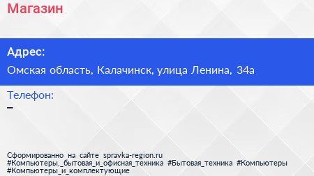 Магазин по адресу Омская область, Калачинск, улица Ленина, 34а в дальнейшем Организация, размещена в следующих категориях: