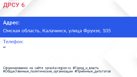 ДРСУ №6 по адресу Омская область, Калачинск, улица Фрунзе, 105 в дальнейшем Организация, размещена в следующих категориях: