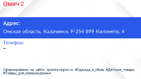 Омич-2 по адресу Омская область, Калачинск, Р-254 899 Километр, 4 в дальнейшем Организация, размещена в следующих категориях: