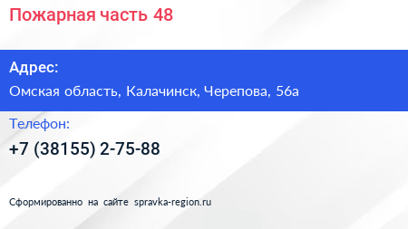 Пожарная часть №48 по адресу Омская область, Калачинск, Черепова, 56а в дальнейшем Организация, размещена в следующих категориях: