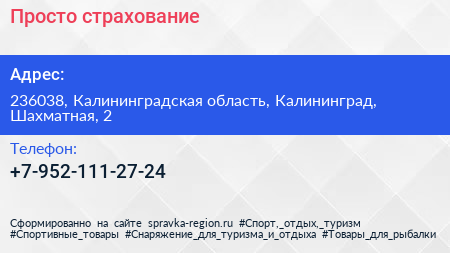 # Просто страхование по адресу 236038, Калининградская область, Калининград, Шахматная, 2 в дальнейшем Организация, размещена в следующих категориях: