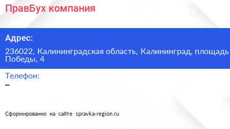 ПравБух, компания по адресу 236022, Калининградская область, Калининград, площадь Победы, 4 в дальнейшем Организация, размещена в следующих категориях: