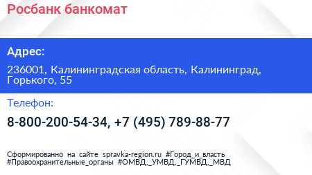 Росбанк, банкомат по адресу 236001, Калининградская область, Калининград, Горького, 55 в дальнейшем Организация, размещена в следующих категориях: