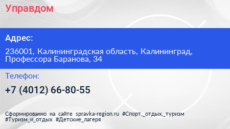 Управдом по адресу 236001, Калининградская область, Калининград, Профессора Баранова, 34 в дальнейшем Организация, размещена в следующих категориях: