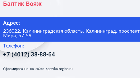 Балтик Вояж по адресу 236022, Калининградская область, Калининград, проспект Мира, 57-59 в дальнейшем Организация, размещена в следующих категориях: